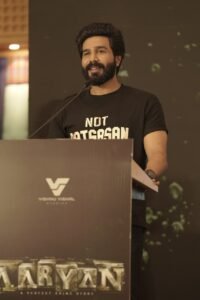 Director Selvaraghavan said, “I had heard about Vishnu Vishal but had never met him until he approached me for Aaryan. When I started working with him, I was amazed by his dedication. He hardly goes home — cinema is his life. He loves, respects, and lives for cinema. Director Praveen is the same — passionate and sincere. Good things always happen to those who love their art. Thank you.”